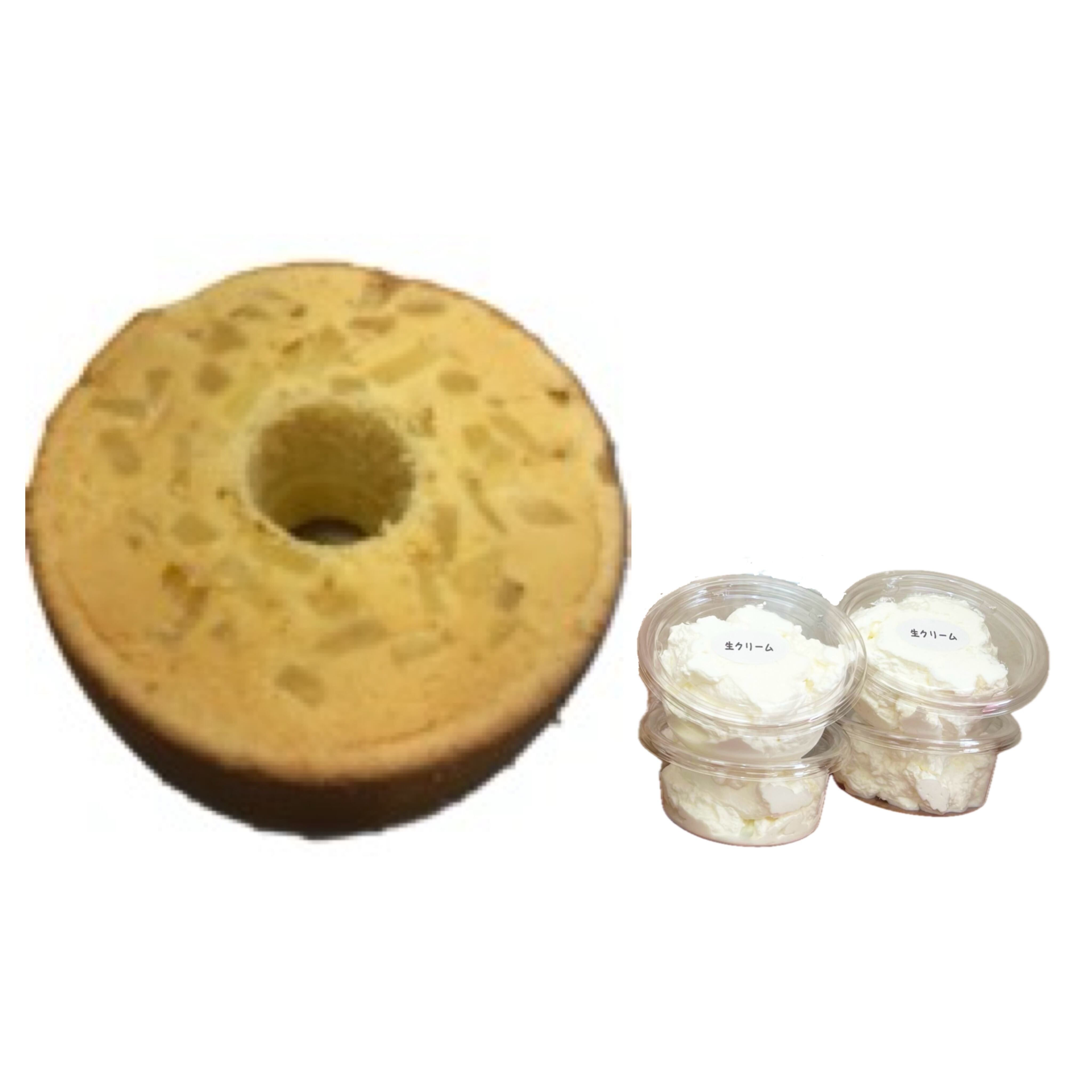 無添加で安心安全のキーポイントのシフォンケーキで自分オリジナルのデコレーションケーキが作れる洋梨シフォンケーキ1ホールとフレッシュ生クリーム4つのセットです。クリスマスや誕生日、パーティーなどのイベントごとにおすすめです。